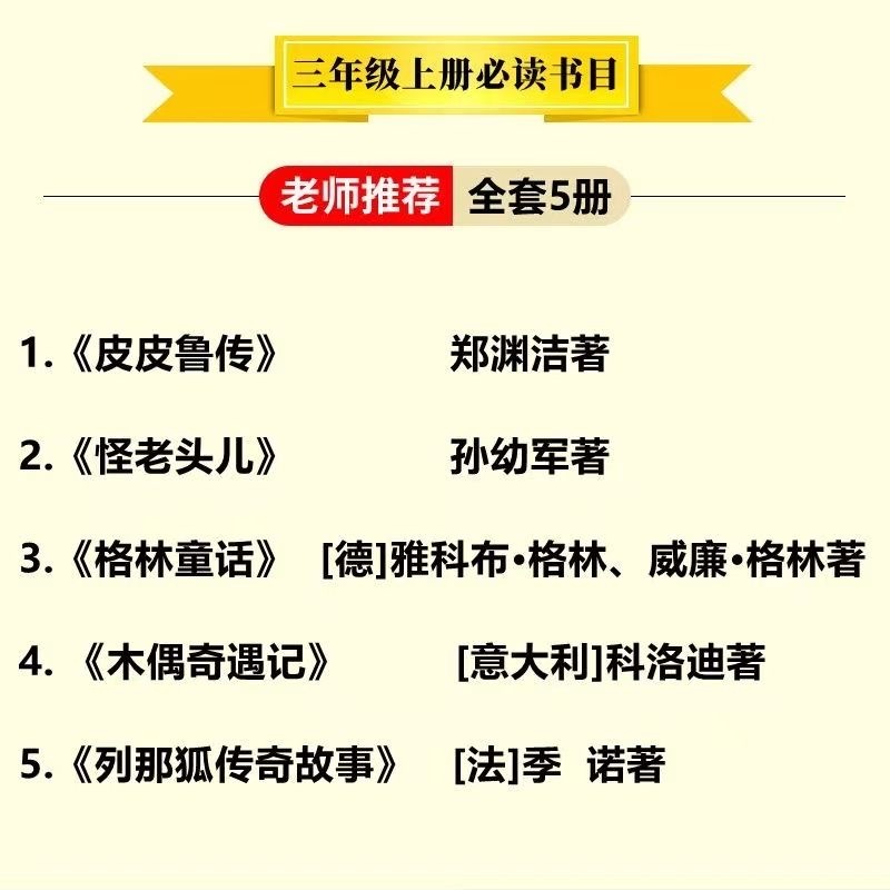 三年级上册必读课外书皮皮鲁传郑渊洁怪老头儿木偶奇遇记格林童话狐狸列那 故事