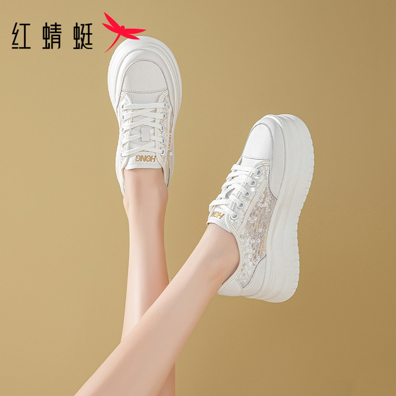 小白鞋 增高亮片轻便百搭休闲鞋 女 镂空网面透气板鞋 红蜻蜓春夏新款
