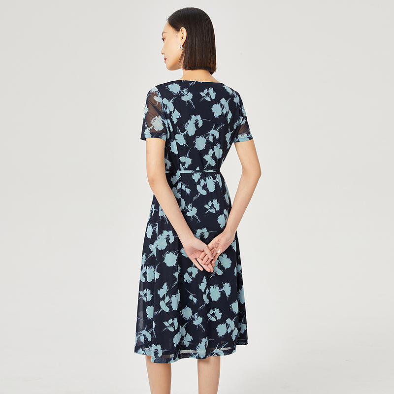 娜尔思气质圆领收腰印花连衣裙25年夏季 NAERSI 新款 松弛假日