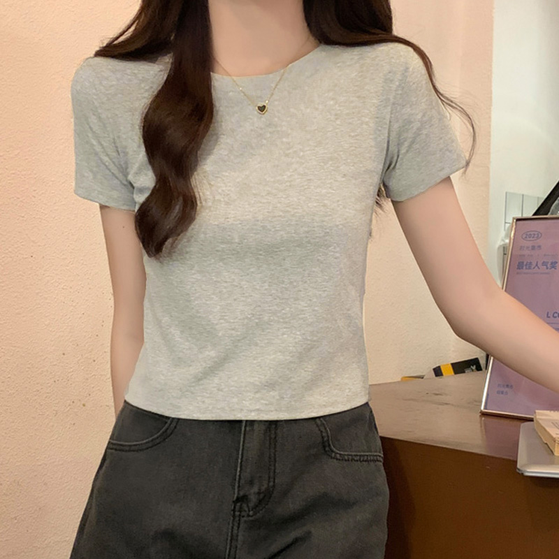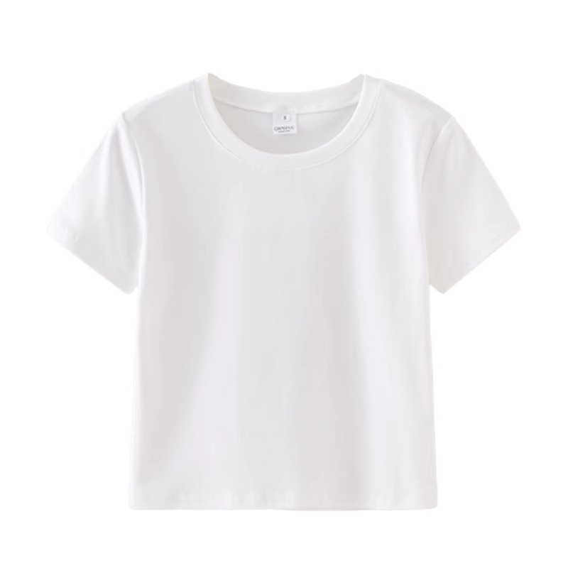 黑色圆领正肩短袖 显瘦短款 t恤女2025夏季 小个子修身 上衣 新款 韩版