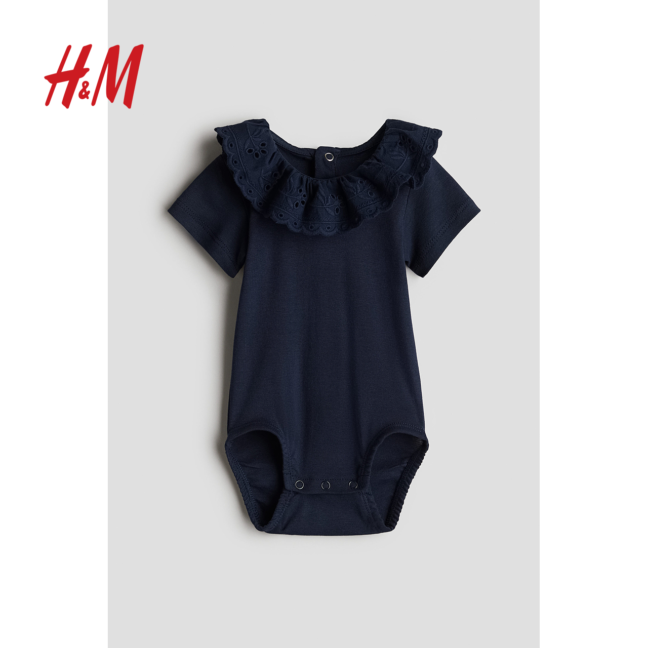 有领短袖 HM童装 婴儿新款 薄款 外出哈衣1265914 女婴连身衣2025秋季