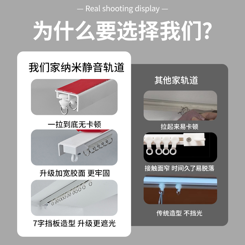 遮挡盒隐 顶装 免打孔窗帘轨道挂钩式 滑轨粘贴超薄内开窗窗帘杆侧装