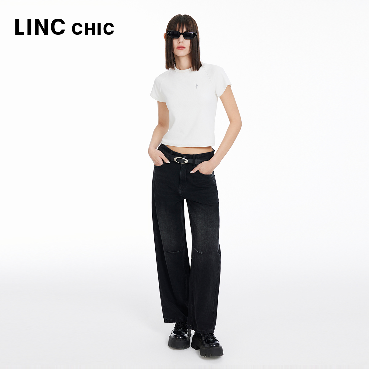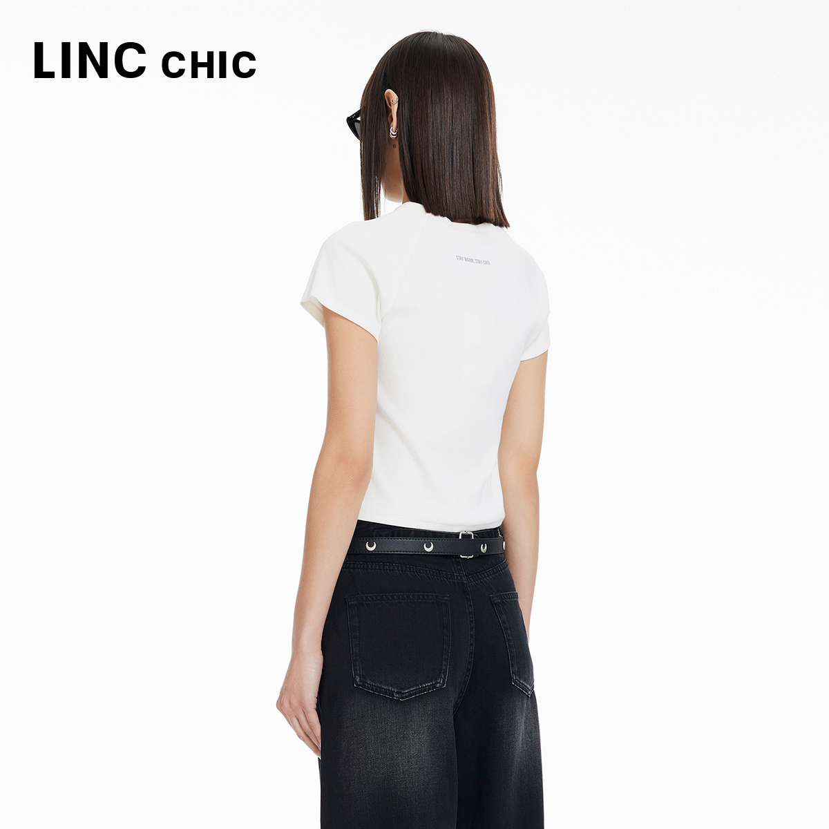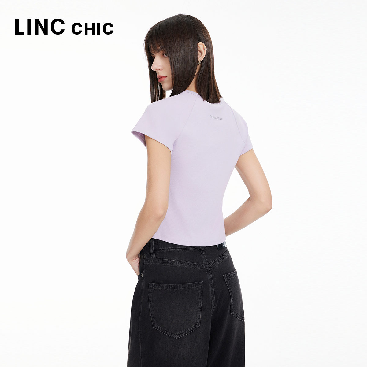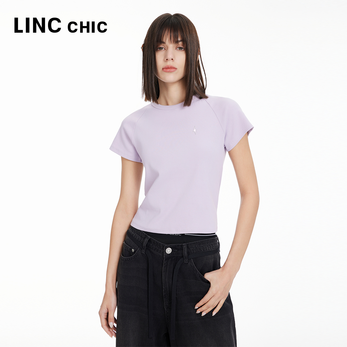 LINCCHIC金羽杰短袖 短T恤FK256Y 女T恤极简紧身插肩上衣女圆领短袖
