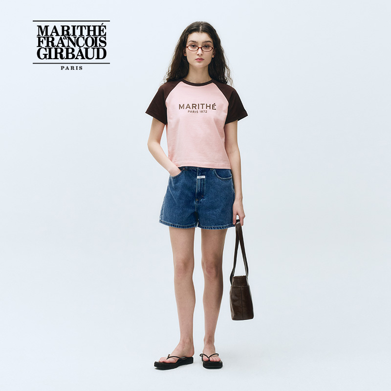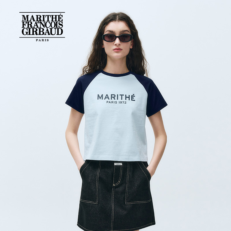 撞色上衣25年夏可露丽 潮流女士LOGO插肩短款 韩系 T恤 MARITHE短袖