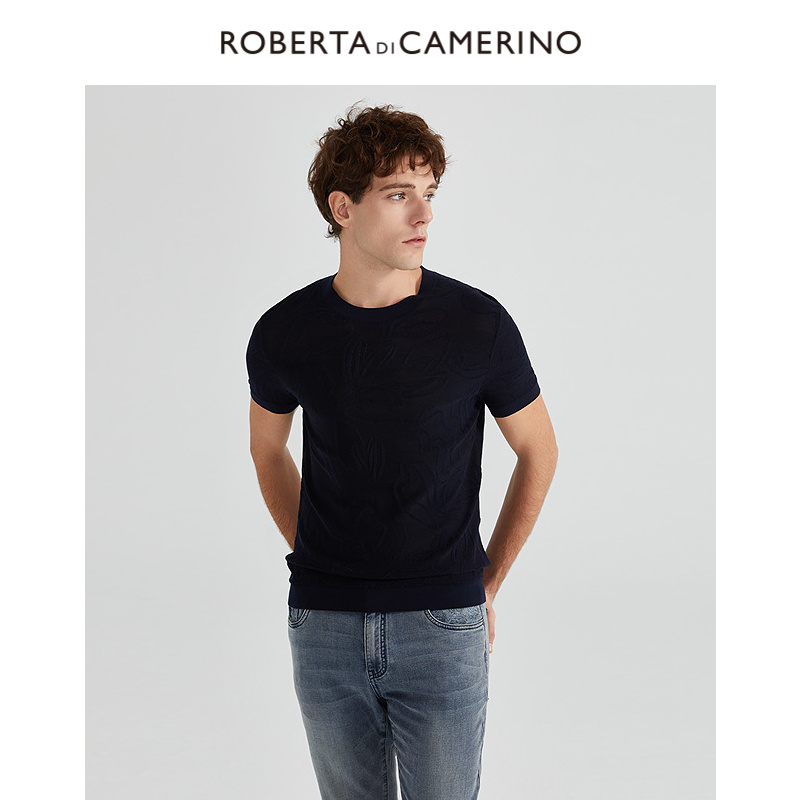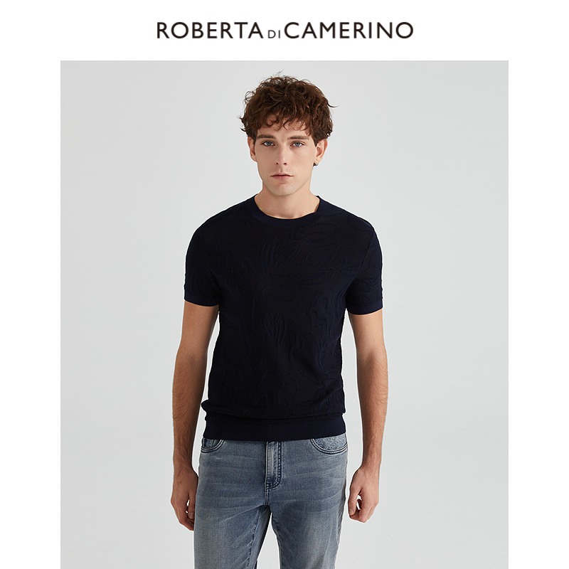 男士 短袖 棉质短袖 暗纹 T恤男 新款 ROBERTA诺贝达男装 25年夏季 毛衫