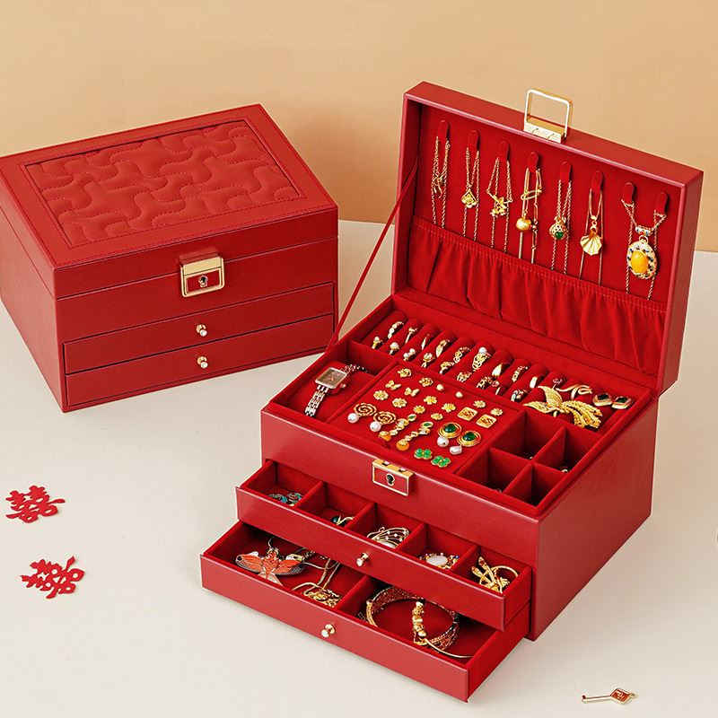 直供欧式 皮质首饰收纳盒多层家用PU珠宝箱大容量多功能饰品盒