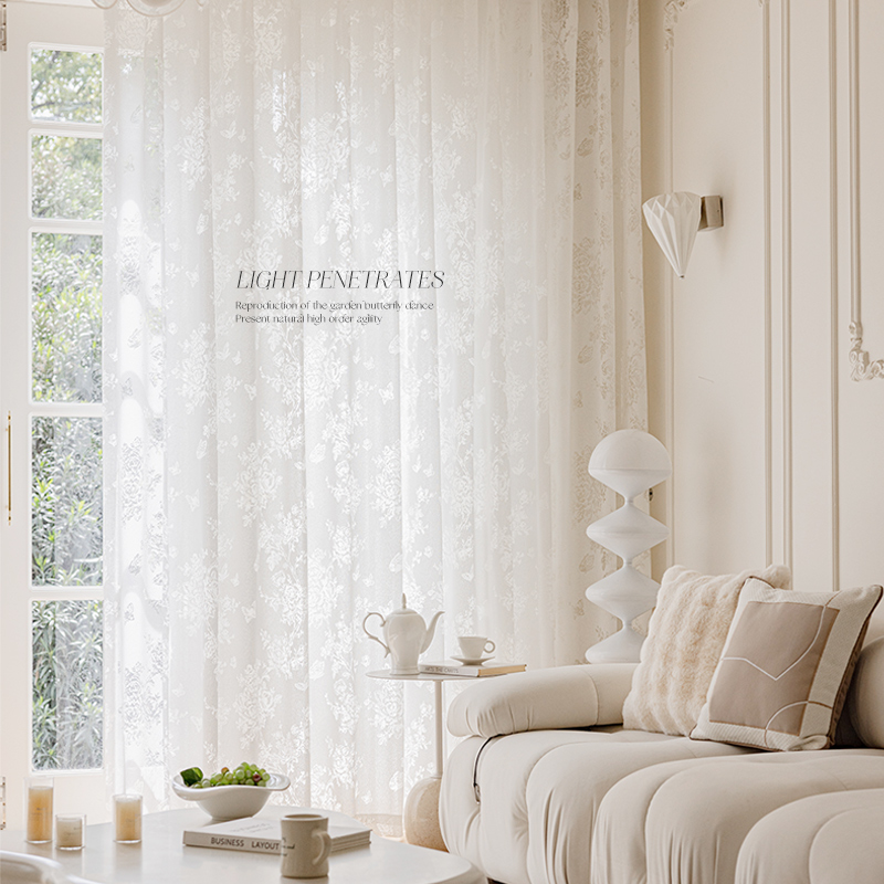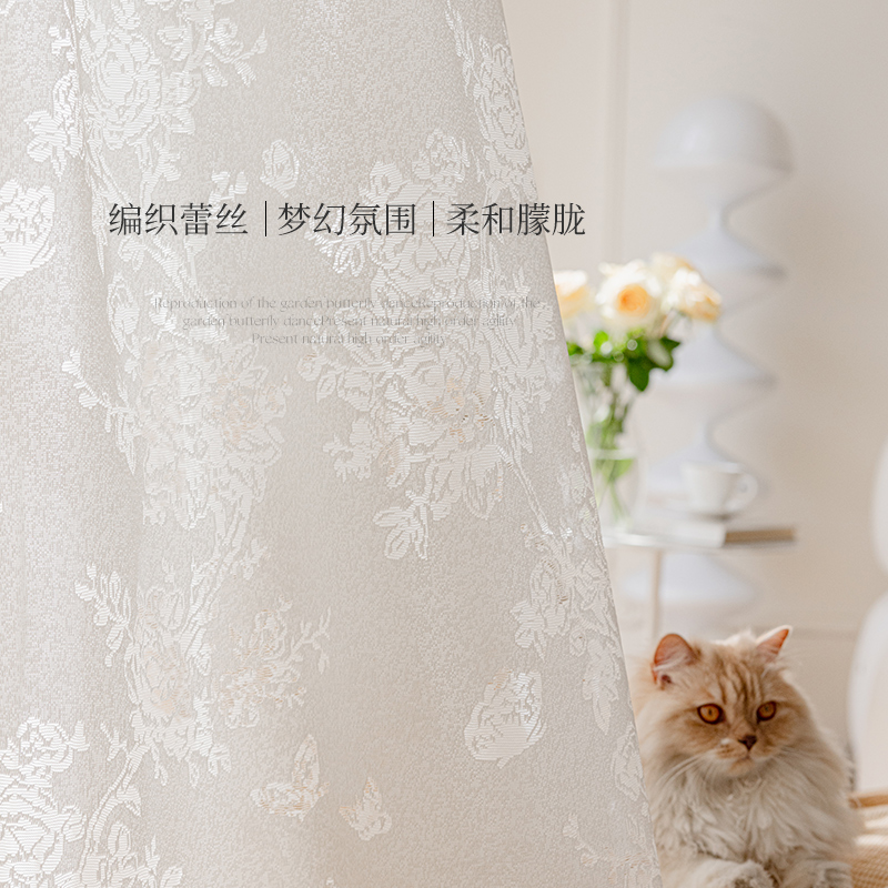 法式 窗纱客厅阳台透光不透人卧室防晒纱 蕾丝蝴蝶纱帘白纱2025新款
