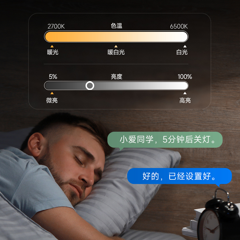 小爱音箱智能语音控制无极调光调色蓝牙Mesh全光谱无频闪护眼灯管