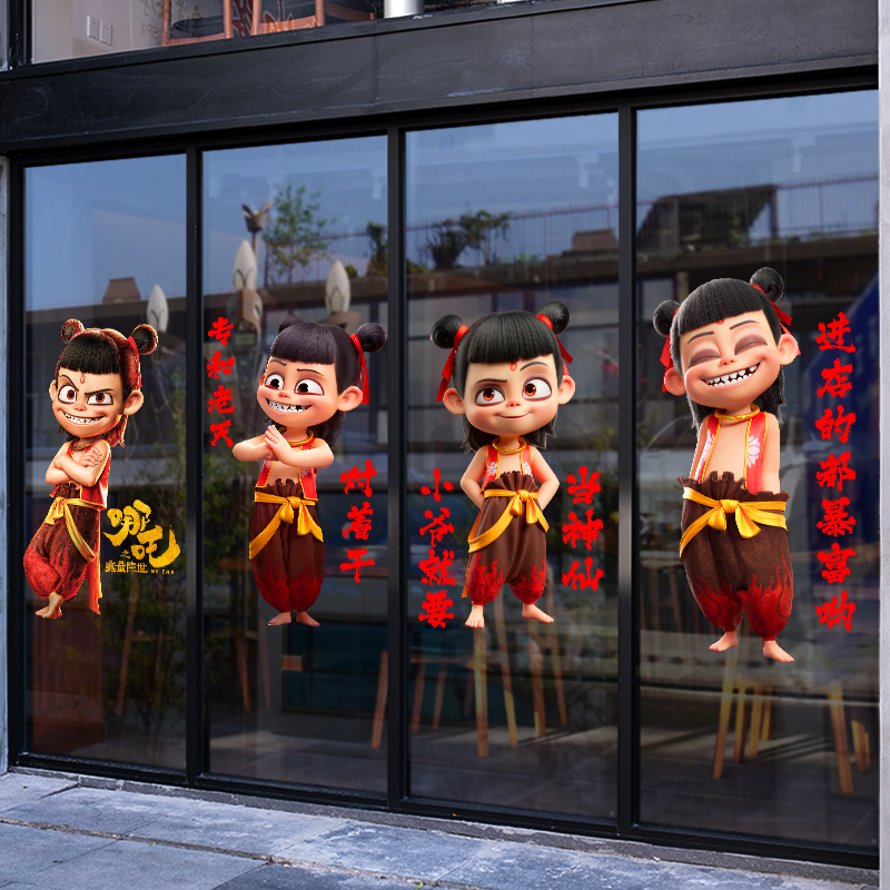 魔童哪吒闹海个性 饰布置 店铺宿舍橱窗静电玻璃贴纸创意卡通动漫装