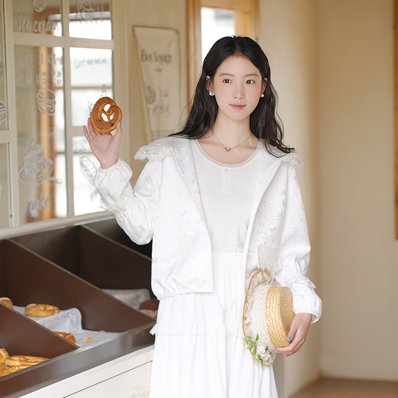 时尚 长袖 蕾丝花边拼接提花连帽外套 新款 上衣 2025春女装 ATAR韩版