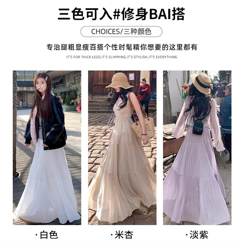 高级感纯色网纱裙中长款 垂感半身裙2025春秋新飘逸仙女裙百褶裙字