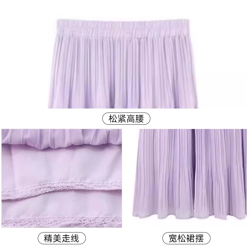 简约中长款 她池松紧腰百褶裙2025秋装 时尚 女装 A字高腰半身裙 新款