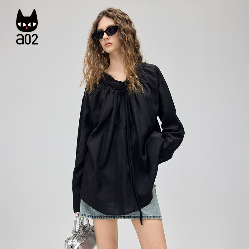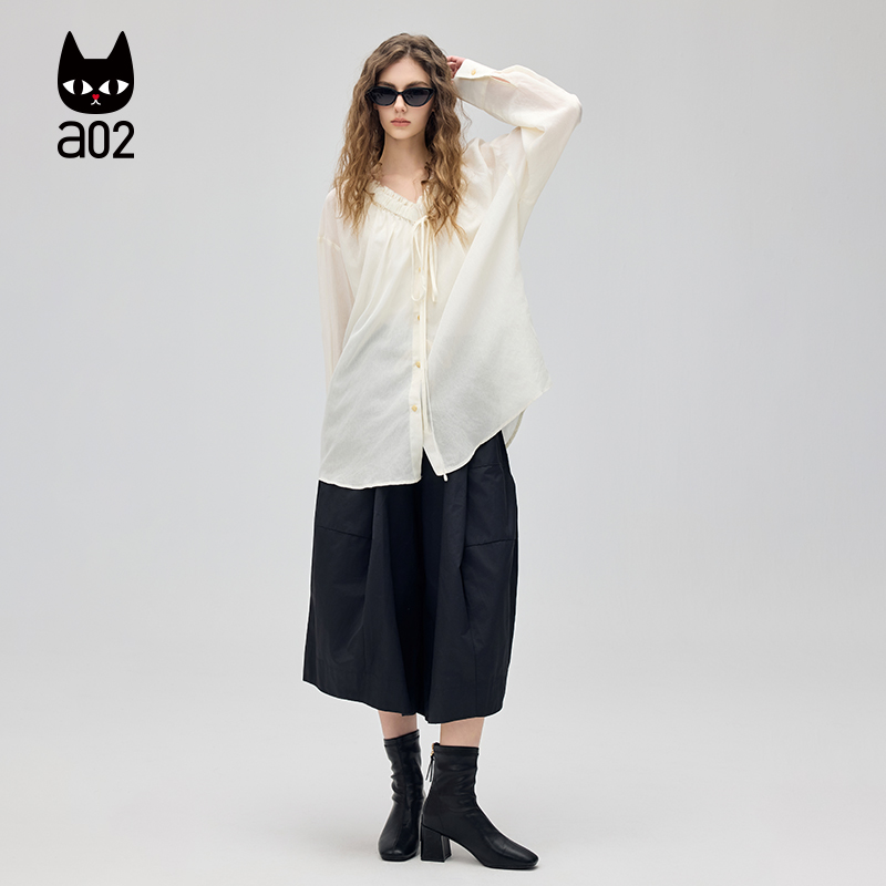 气质法式 a02通勤风V领长袖 新款 女2025年秋季 上衣 衬衫