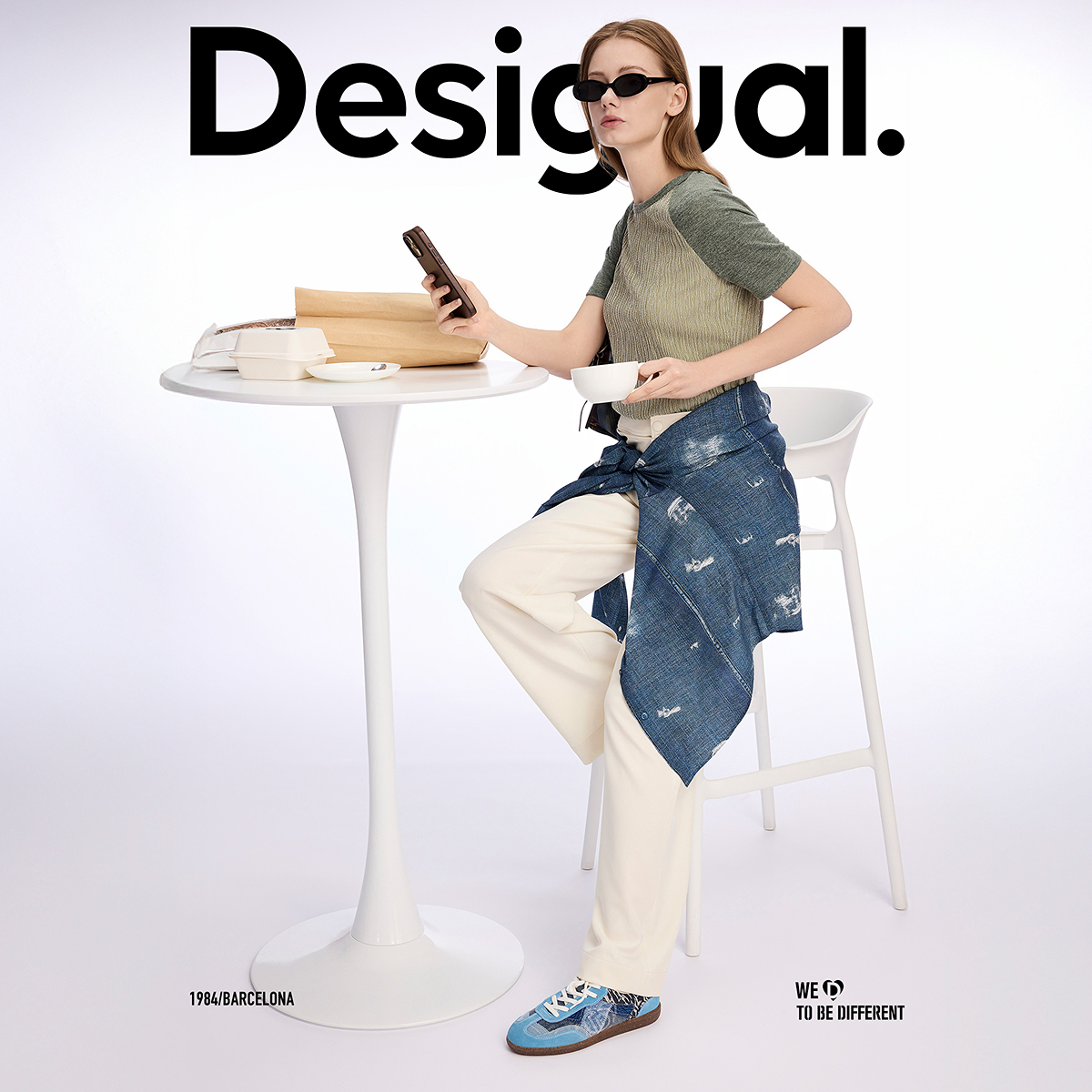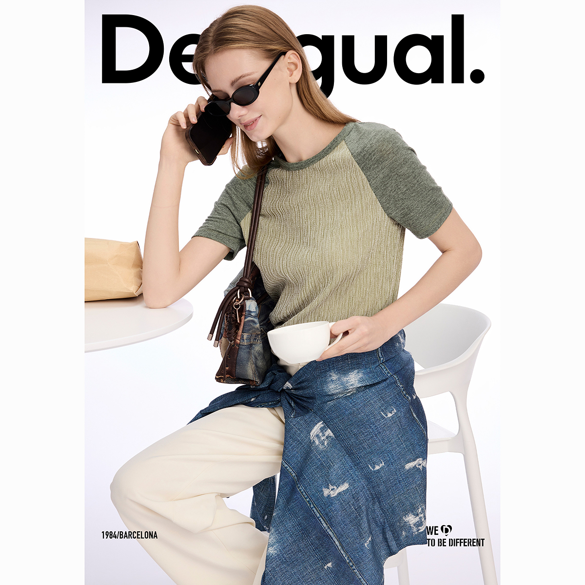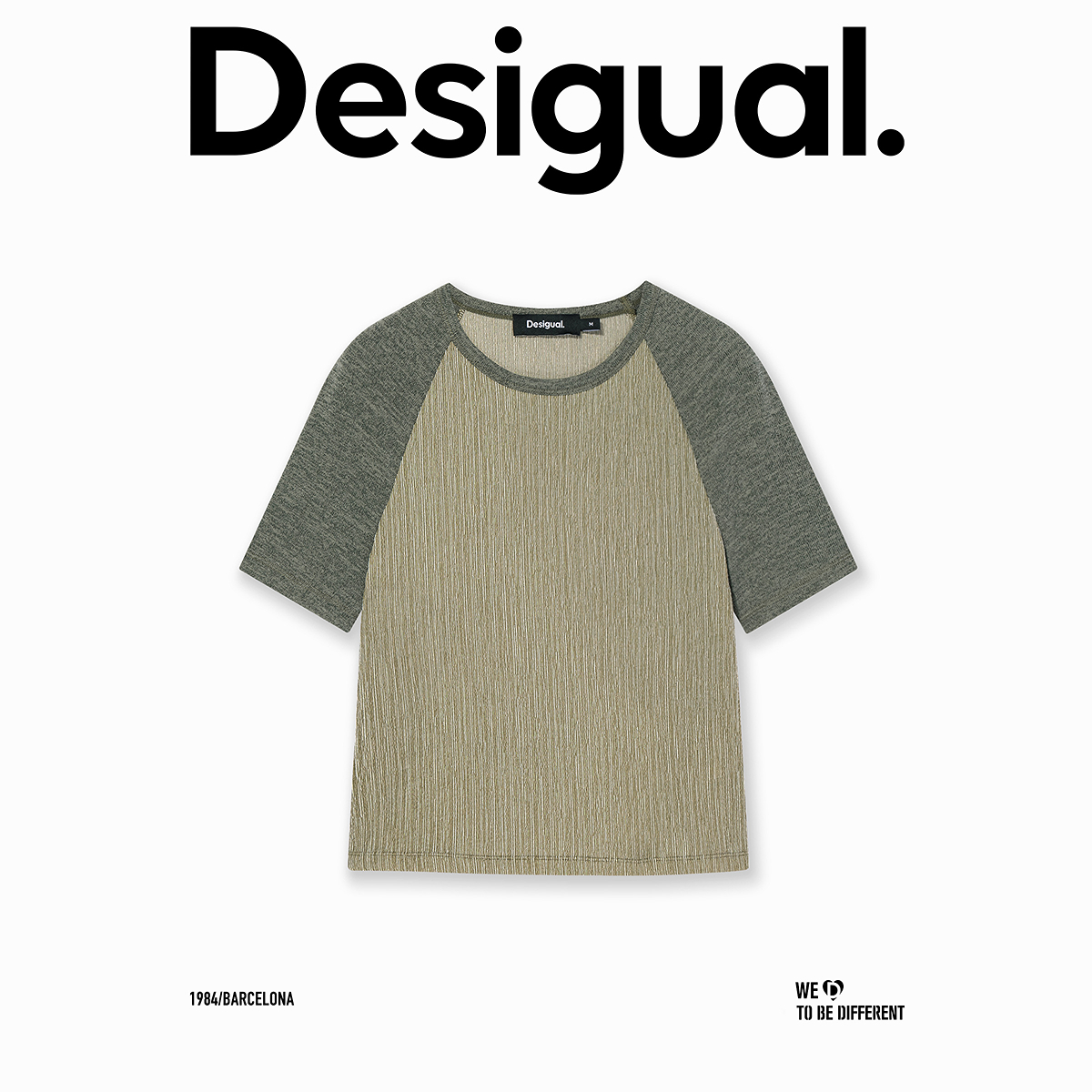 T恤 女士短袖 Desigual弹力拼接修身 薄荷曼波风插肩袖