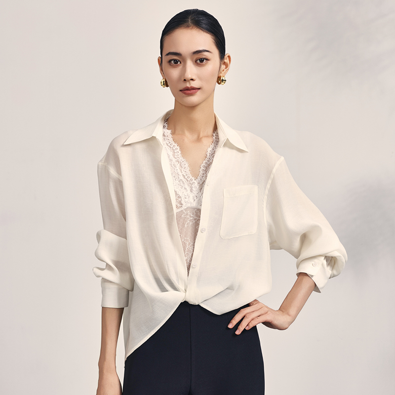 匡册朦胧倩影小众设计感衬衫 女士轻职场穿搭气质衬衣性感漂亮小衫