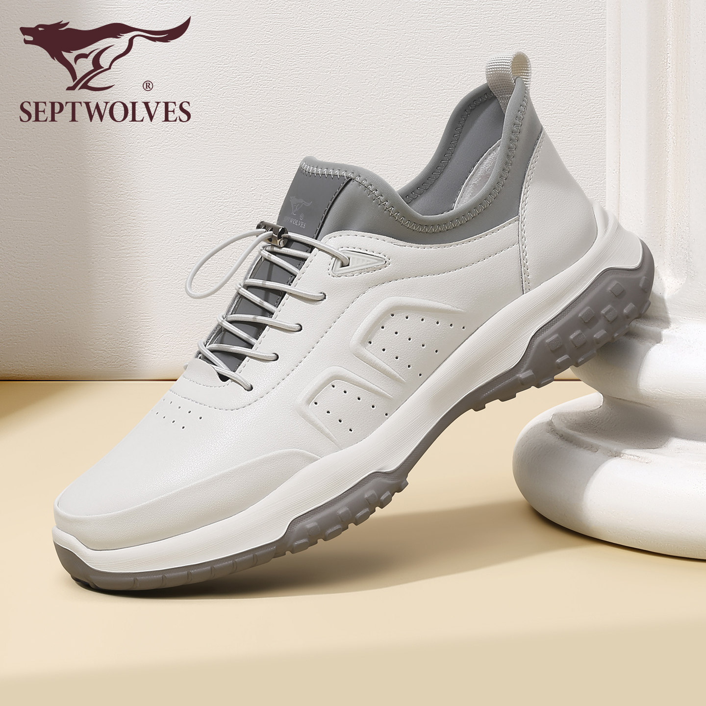 厚底白色运动鞋 七匹狼男士 子男秋季 轻便软底透气真皮鞋 运动休闲鞋