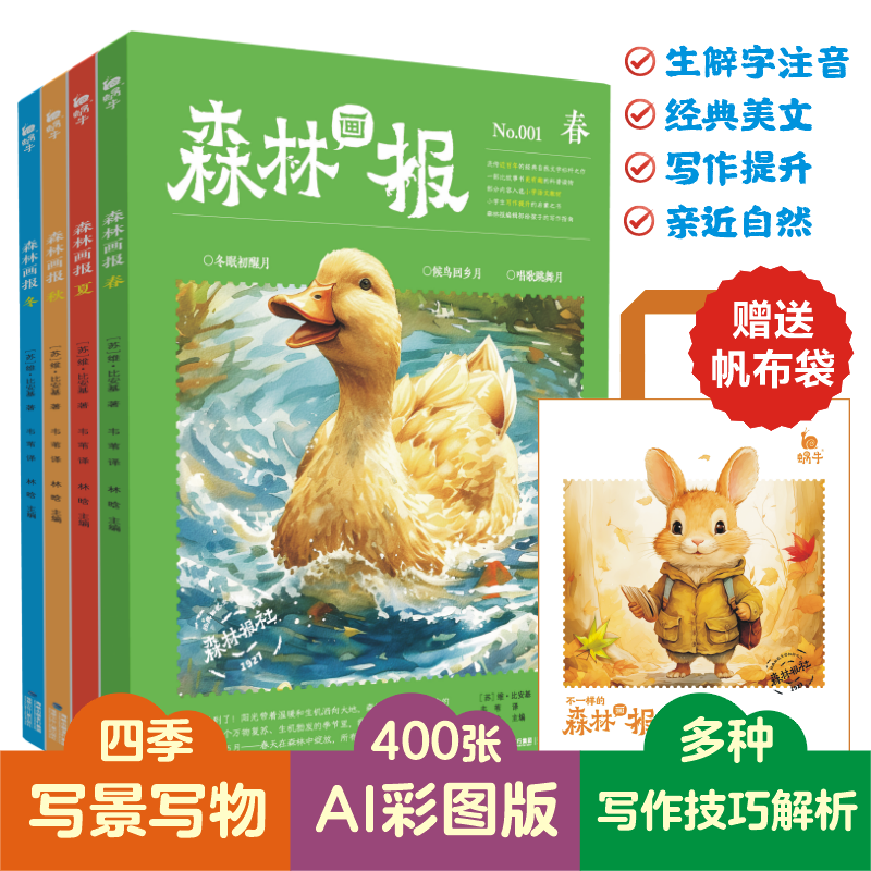小学课外书森林报春夏秋冬全四册四年级必读课外书好词好句积累阅读拓展作文指导书小学生语文写作指导启蒙素材积累大开本经典 名著