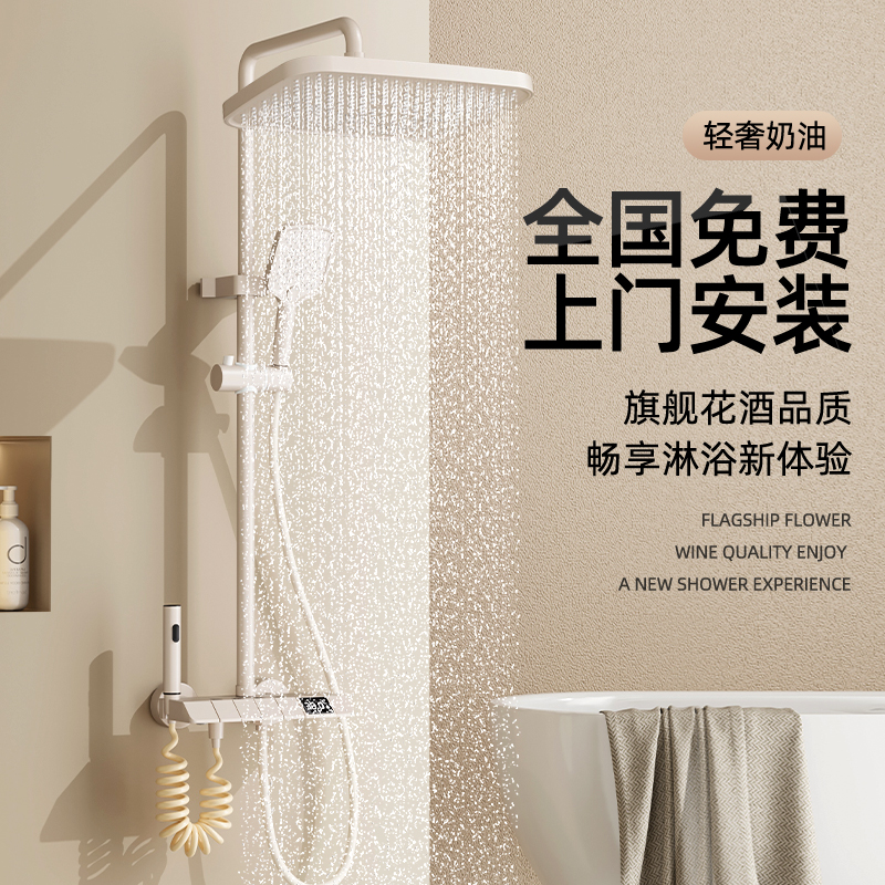 奶油风白色恒温花洒套装 淋浴浴室家用钢琴键淋雨沐浴器花晒头喷头