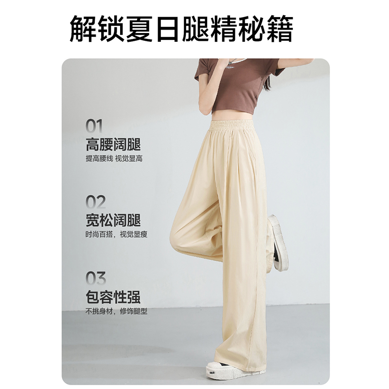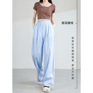 山本裤 夏小个子垂感直筒休闲薄款 女2025新款 KYV真维斯黑色阔腿裤