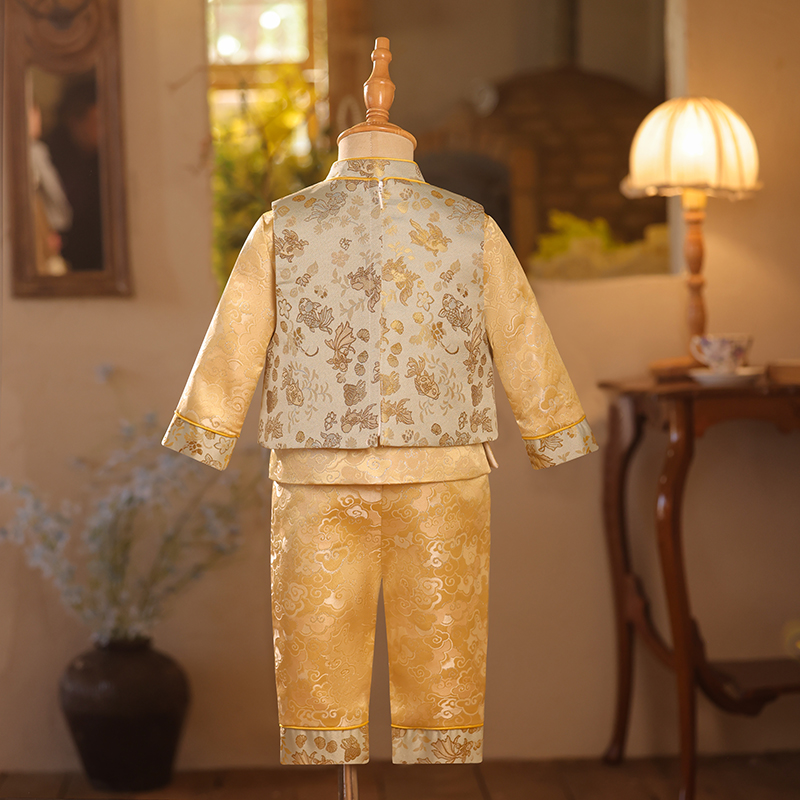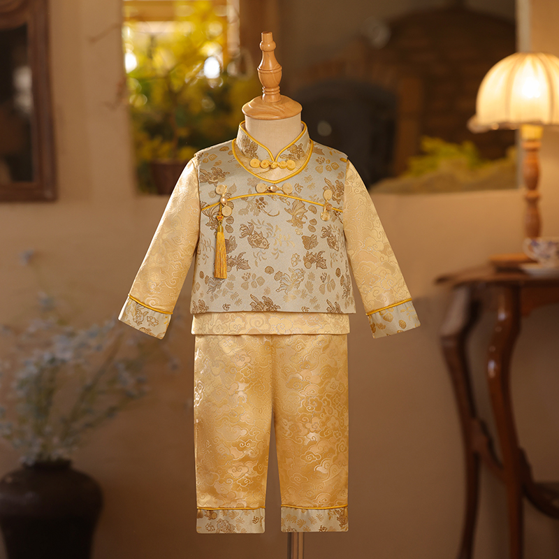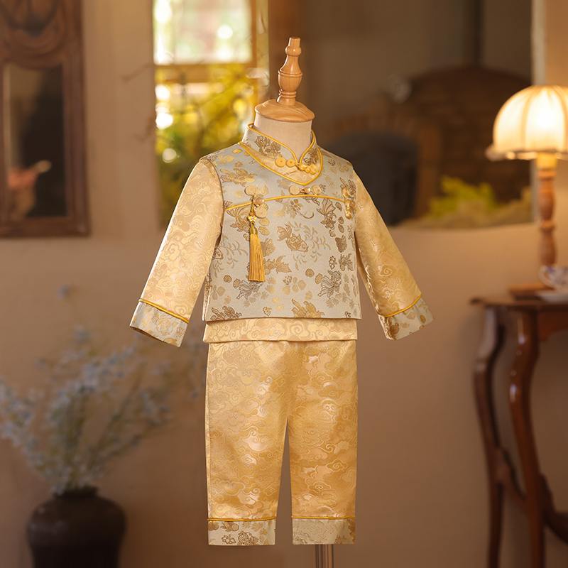 春秋 宝宝生日抓周衣服冠衣男童唐装 一周岁礼服男宝新中式 2025新款