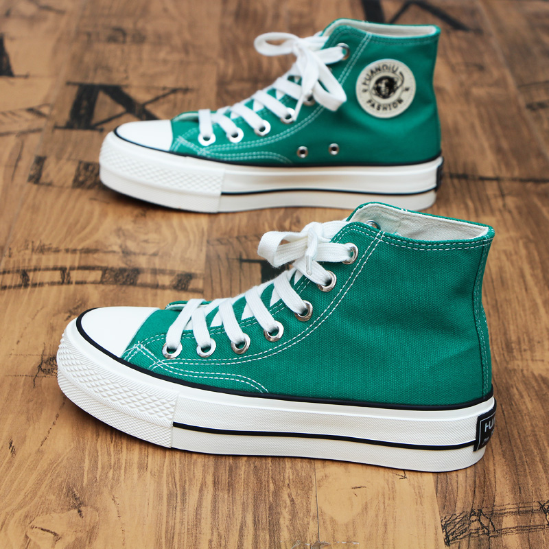 子休闲运动鞋 鮀品四叶草板鞋 百搭绿色鞋 厚底帆布鞋 女2025秋冬新款