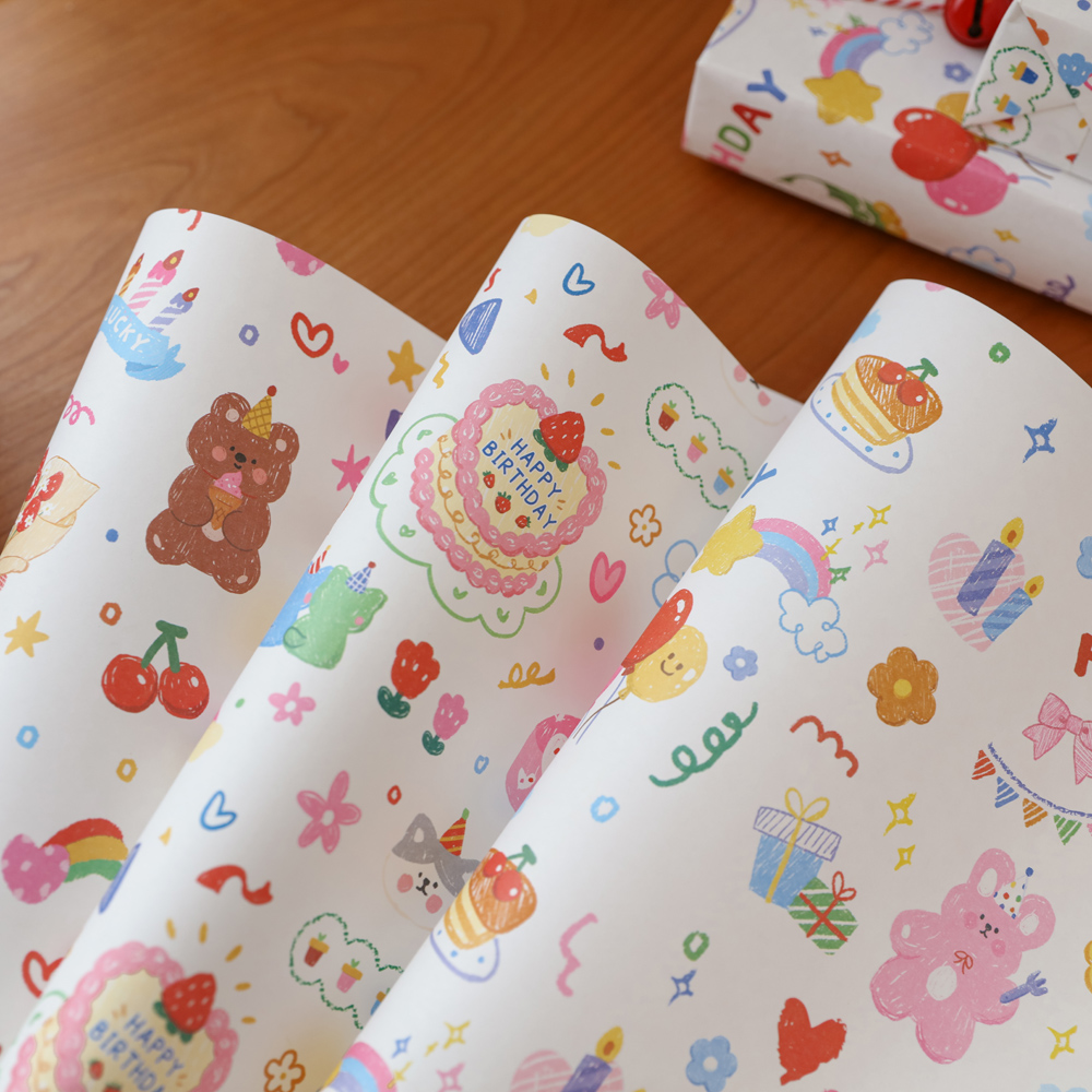 可爱少女心书皮纸大张礼品纸 书皮纸花束包装 冠淘生日快乐大张礼物包装 纸高颜值可爱生日礼品礼物包装