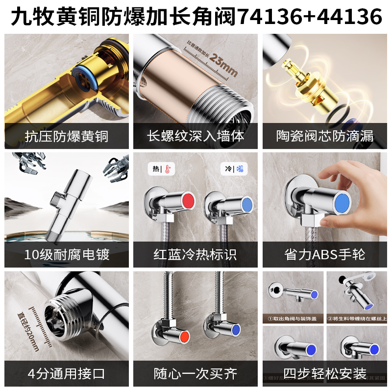 九牧角阀加长三角阀加厚全铜冷热阀门开关热水器马桶八字阀74075