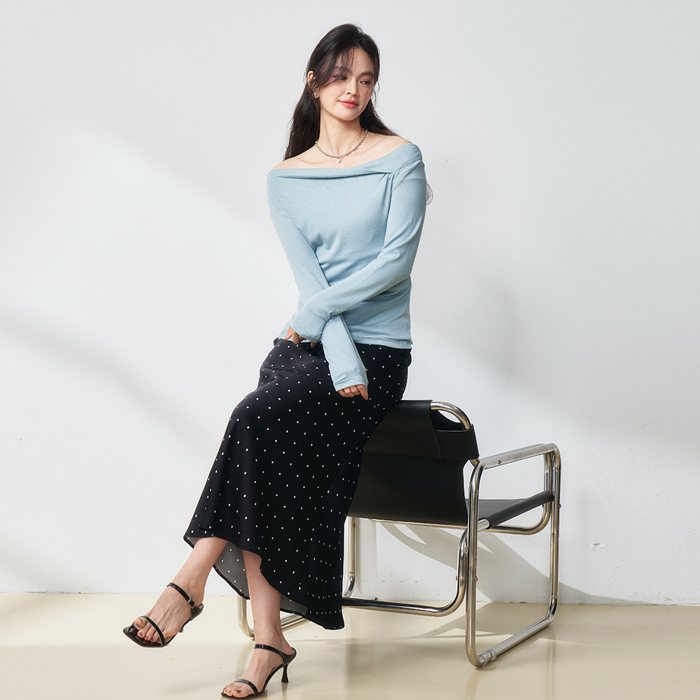 半身裙香槟粉18299 法式 25春夏新款 黑色波点高级缎面复古鱼尾长款