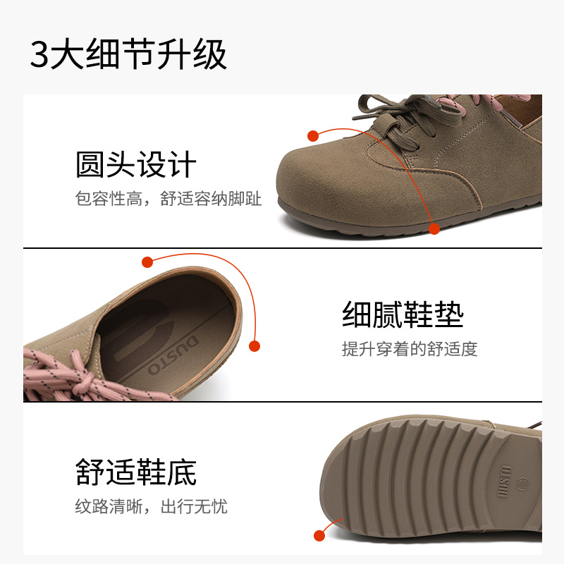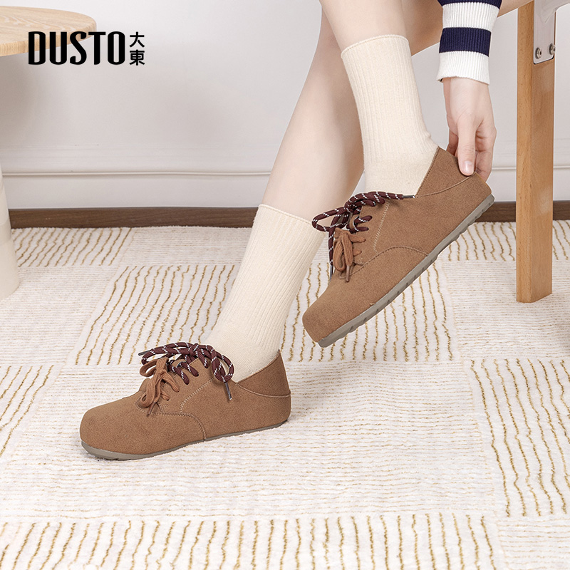 2025秋季 复古平底系带圆头舒适轻便女单鞋 新款 女鞋 时尚 大东勃肯鞋