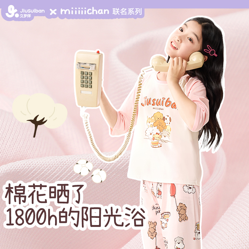 家居服套装 久岁伴miiiiichan联名儿童睡衣女童薄款 透气纯棉七分袖
