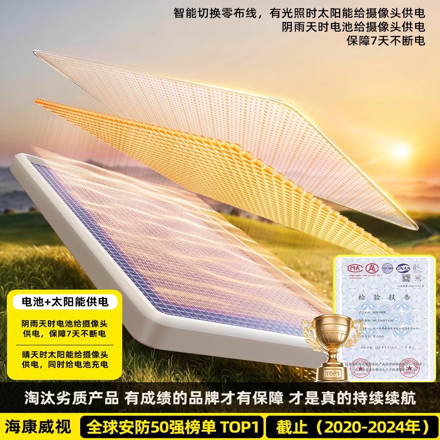 海康威视4G太阳能监控摄像头器360度无死角室外家用免插电无需网
