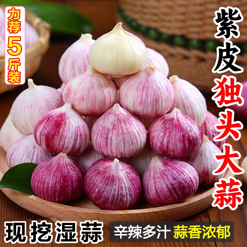 云南新鲜紫皮独头蒜农家新大蒜批发现挖湿蒜红皮蒜头生鲜鲜蒜种植