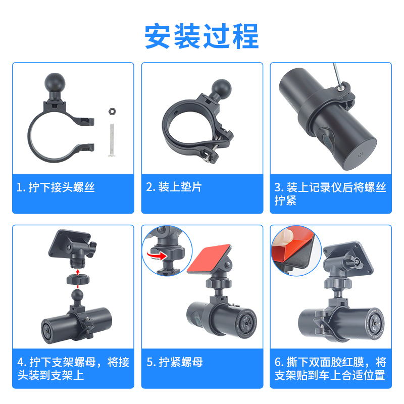 双面胶方形底座圆圈接头圆柱型记录仪粘贴式 支架适用于盯盯拍360