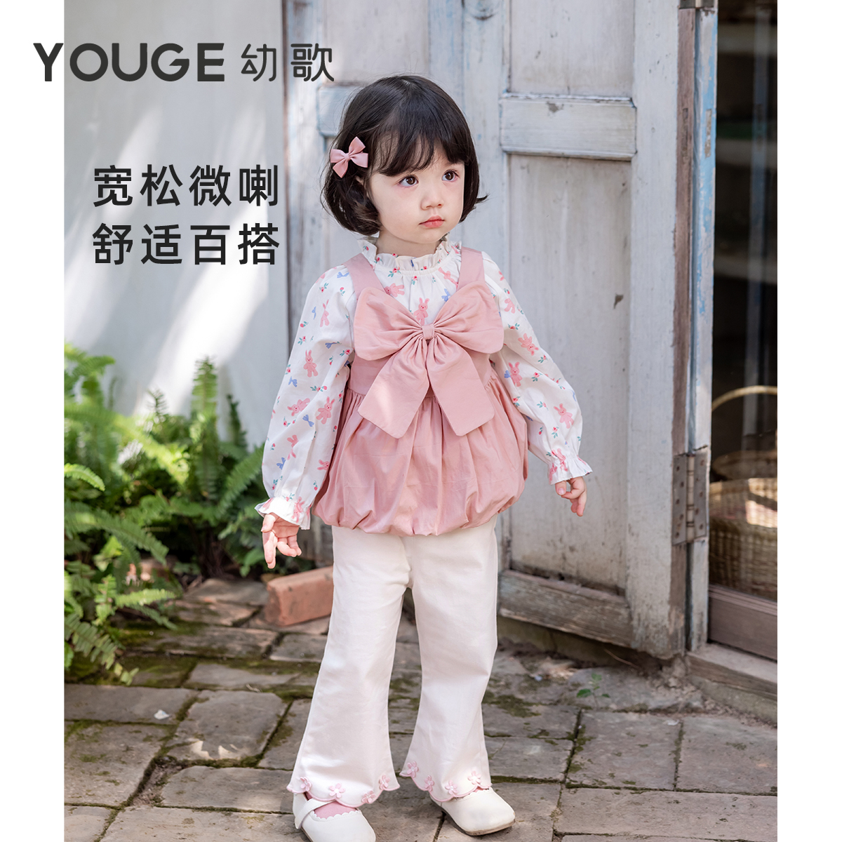 儿童百搭柔软长裤 撞色花边小花微喇裤 潮 新款 YOUGE幼歌婴幼儿夏季