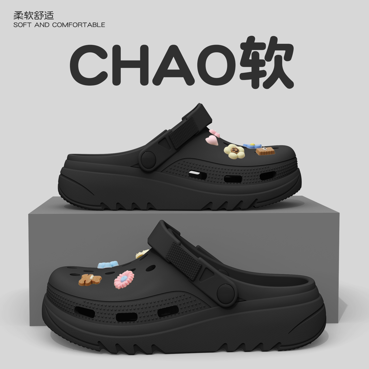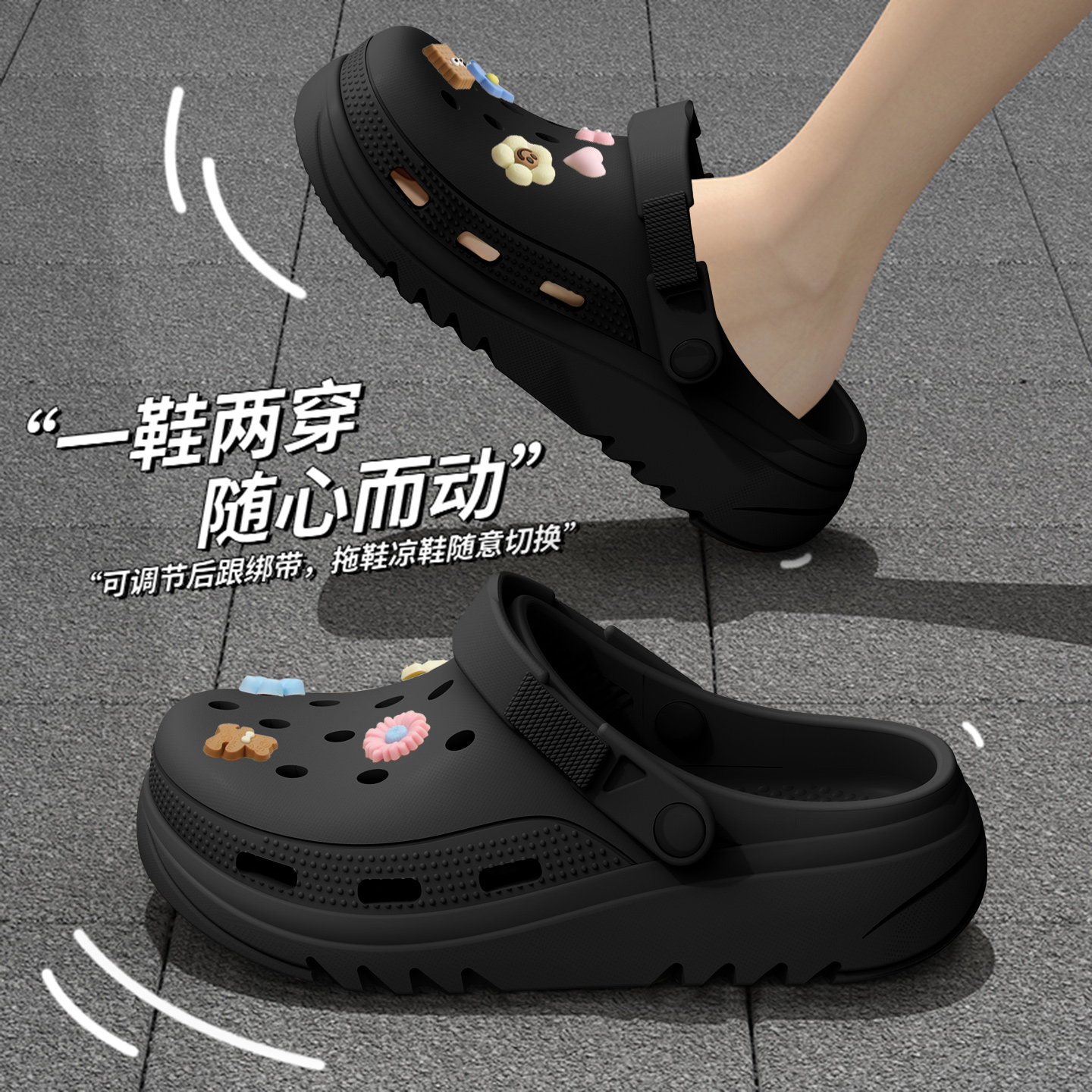 软底防滑防臭情侣运动风拖鞋 踩屎感洞洞鞋 新款 2025夏季 外穿女 男士