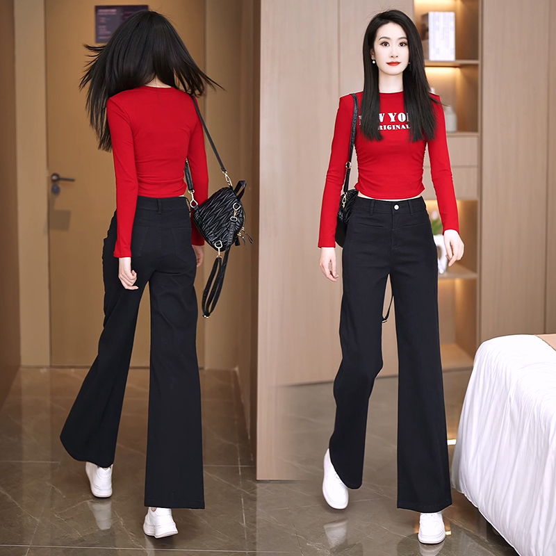 女窄版 高腰显瘦直筒裤 阔腿裤 新款 子 2025年春秋季 高腰卡其色牛仔裤