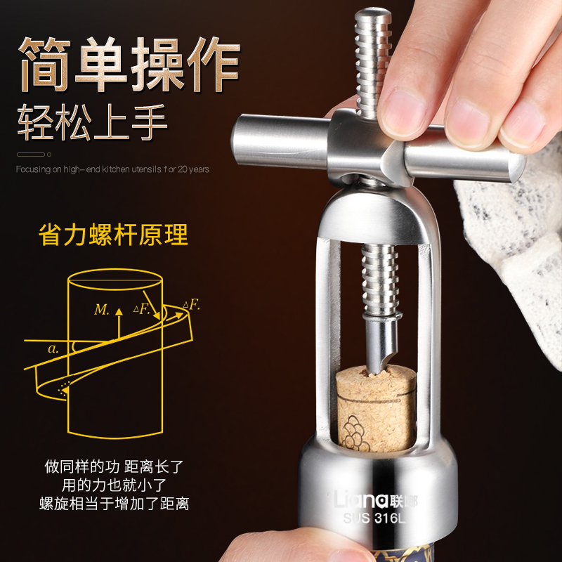 联娜316L不锈钢红酒开瓶器家用高档商用手动葡萄酒启瓶器开酒瓶器
