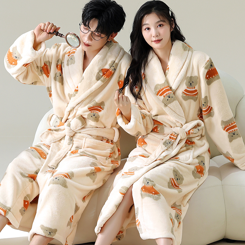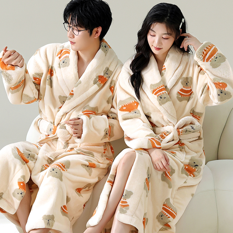 情侣睡袍男女秋冬季 春秋法兰绒睡衣可外穿浴袍 加厚珊瑚绒保暖长袖
