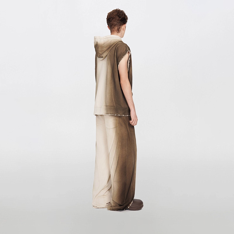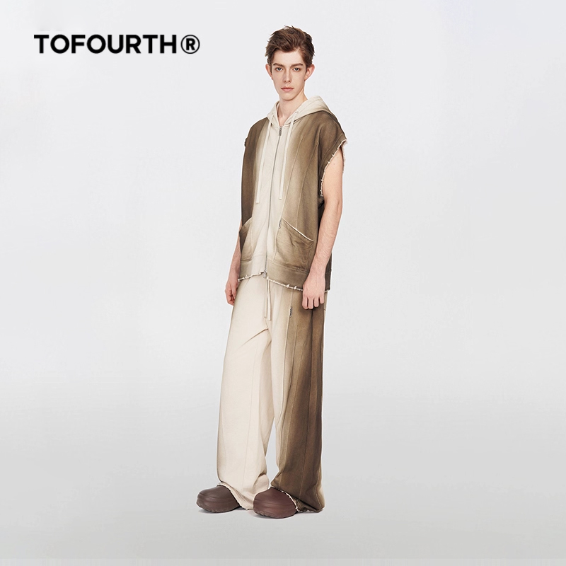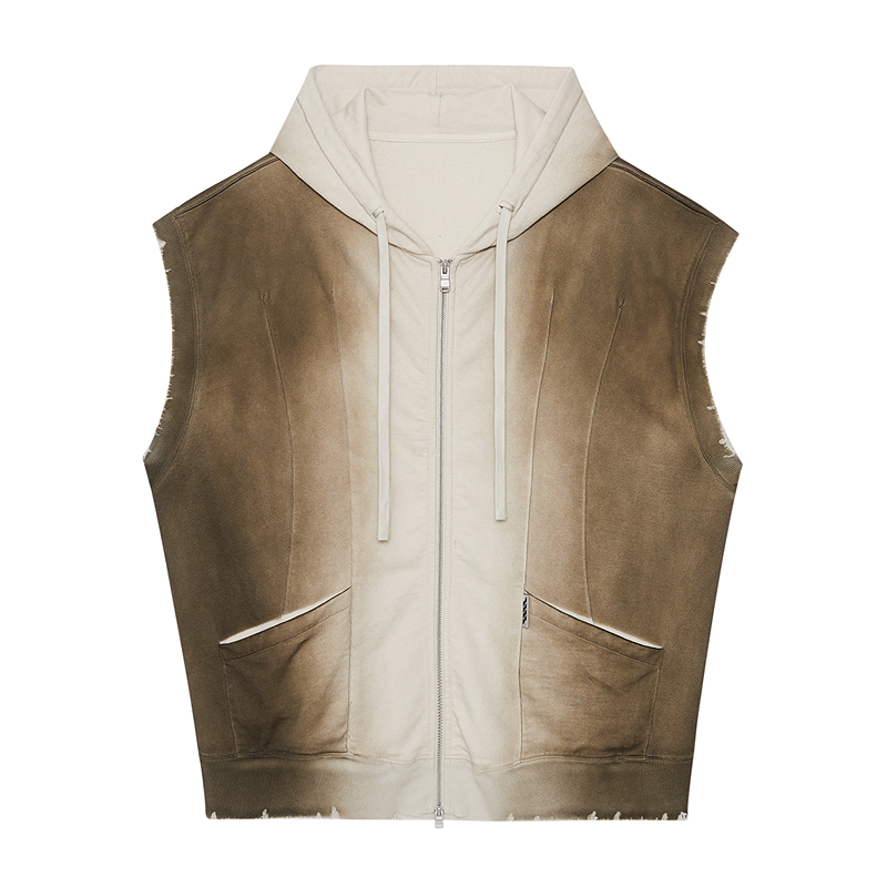 上衣男女同款 TOFOURTH 卫衣拉链开衫 扎染渐变连帽无袖 废墟沙丘