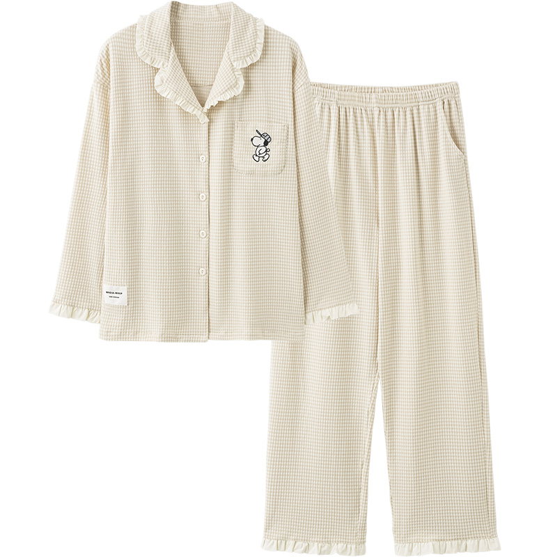 可外穿家居服套装 猫人纯棉睡衣女春秋2025新款 宽松加大码 冬款 长袖
