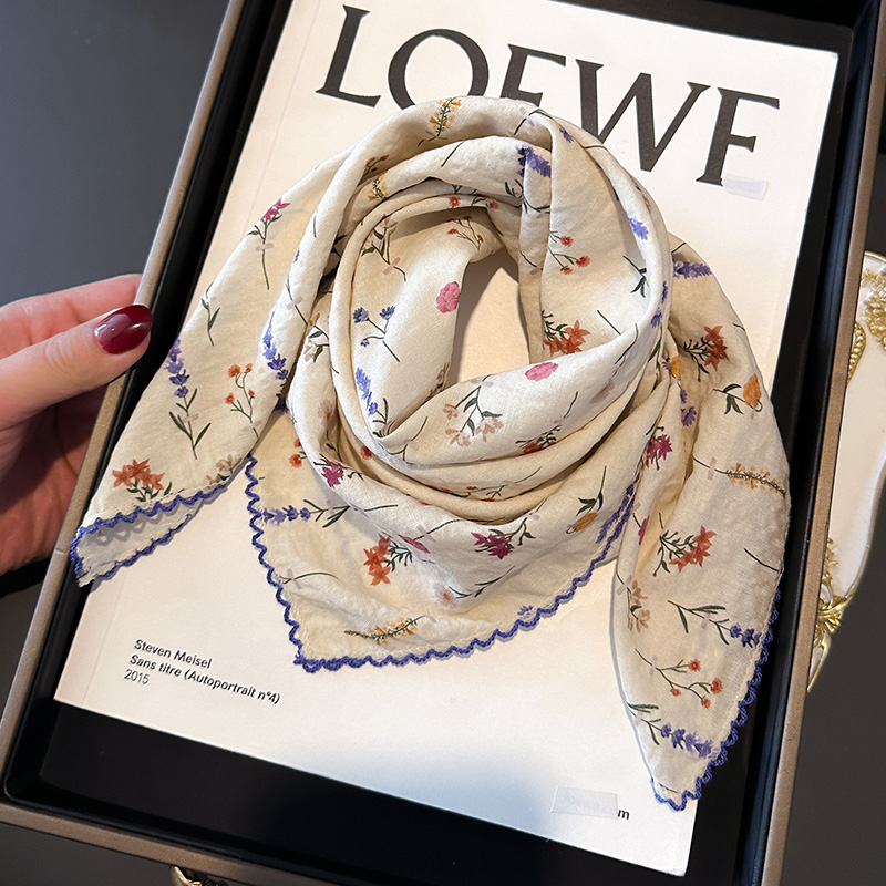小方巾三角包头巾棉丝巾春秋夏季 护颈围脖子女碎花发带薄纱巾围巾