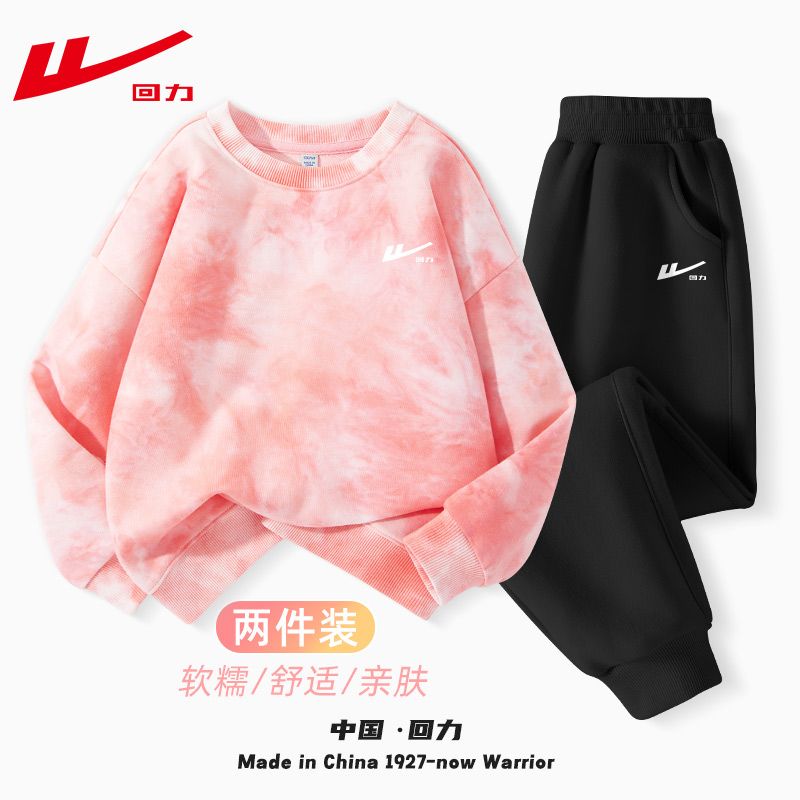 运动扎染卫衣学生秋装 回力童装 女童春秋款 套装 女大童上衣 儿童秋季
