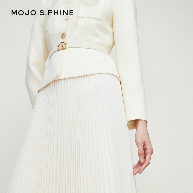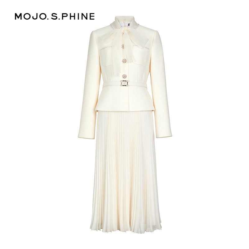 MOJO莫佐千金风拼接假两件花呢香风连衣裙2024新款 重工巴洛克长裙