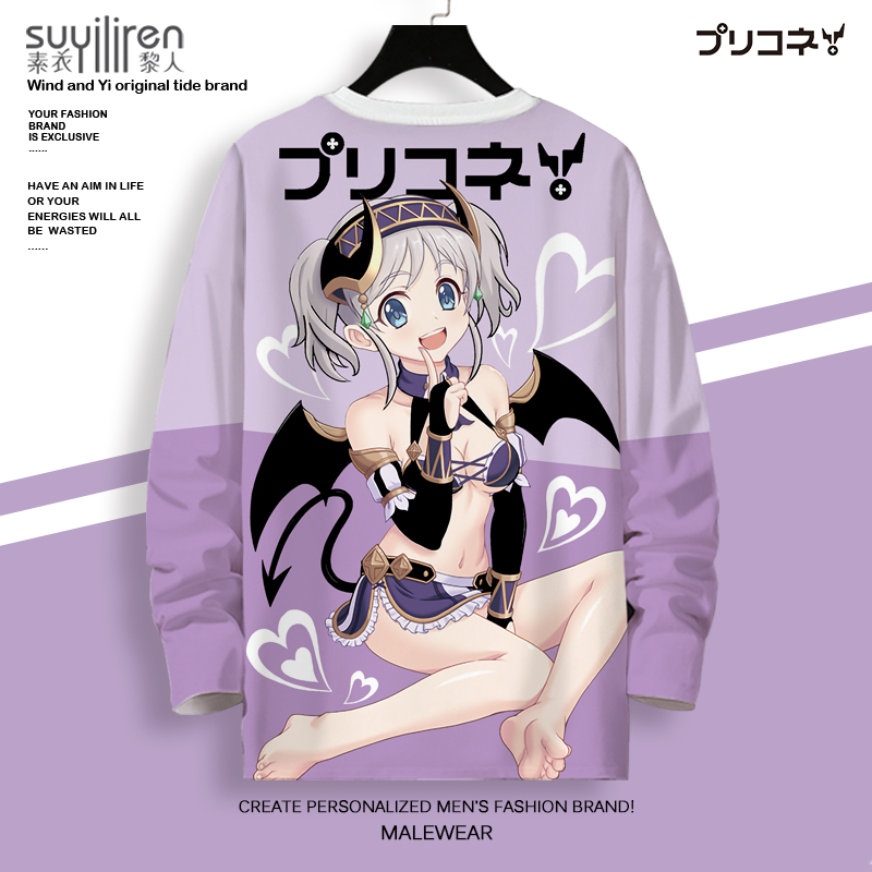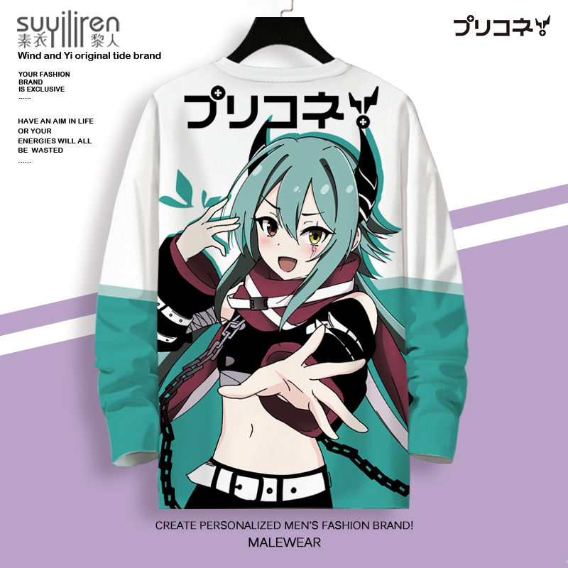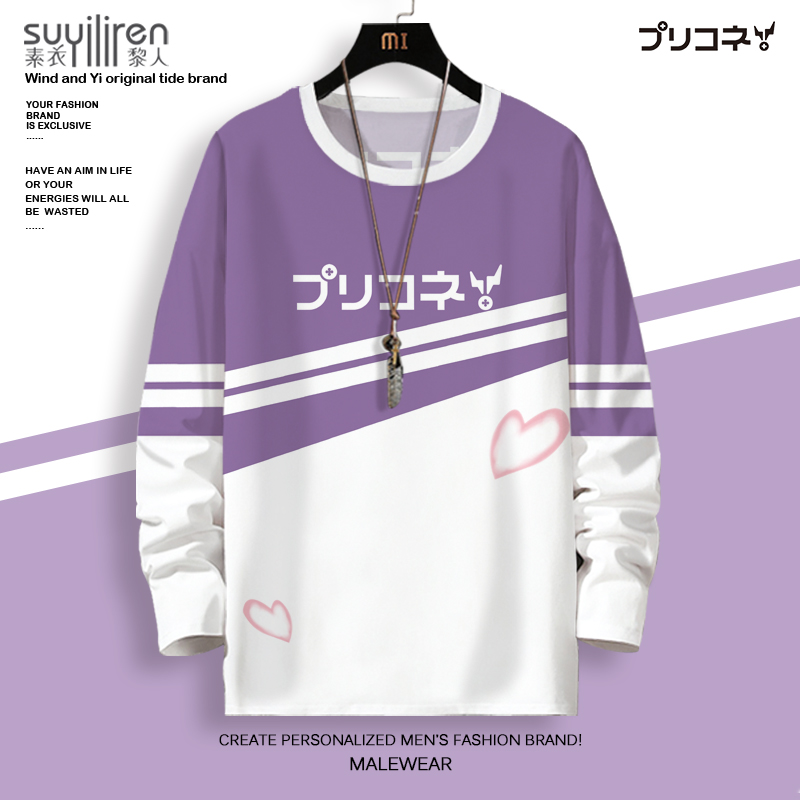 日系潮牌长袖 打底 T恤男公主连结cos痛衣卡通印花oversize圆领薄款