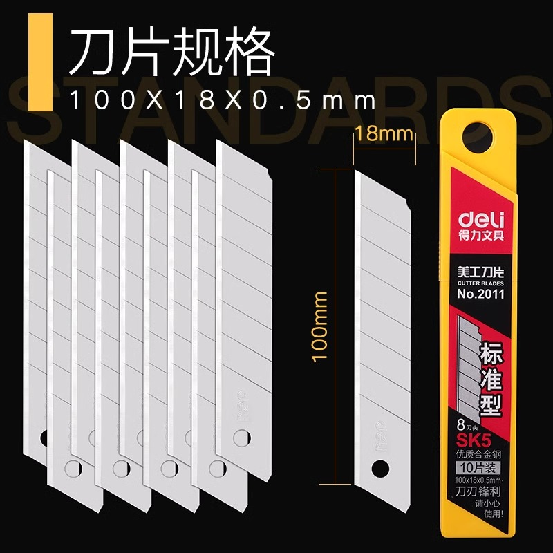 得力18mm大号美工刀片壁纸裁纸刀替换刀片手工刀片割纸刀拆快递刀神器开箱刀片8刀头SK5合金钢刀片