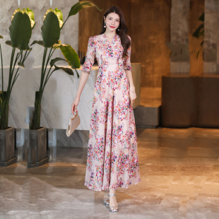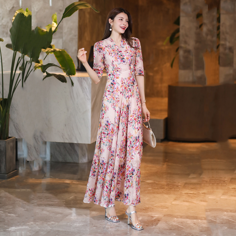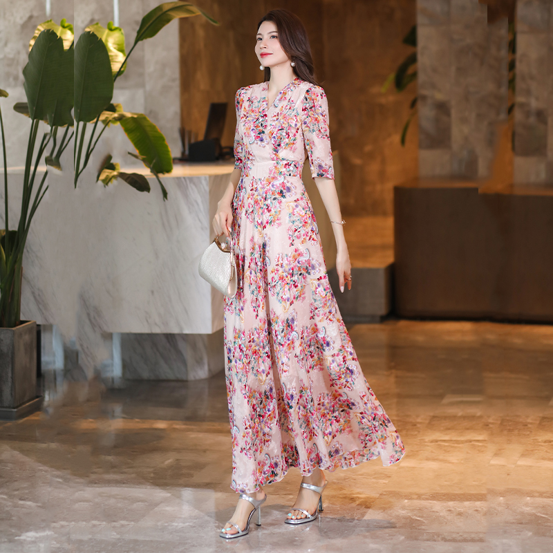 中长款 短袖 花卉设计V领裙子1238595 连衣裙秋季 HM女装