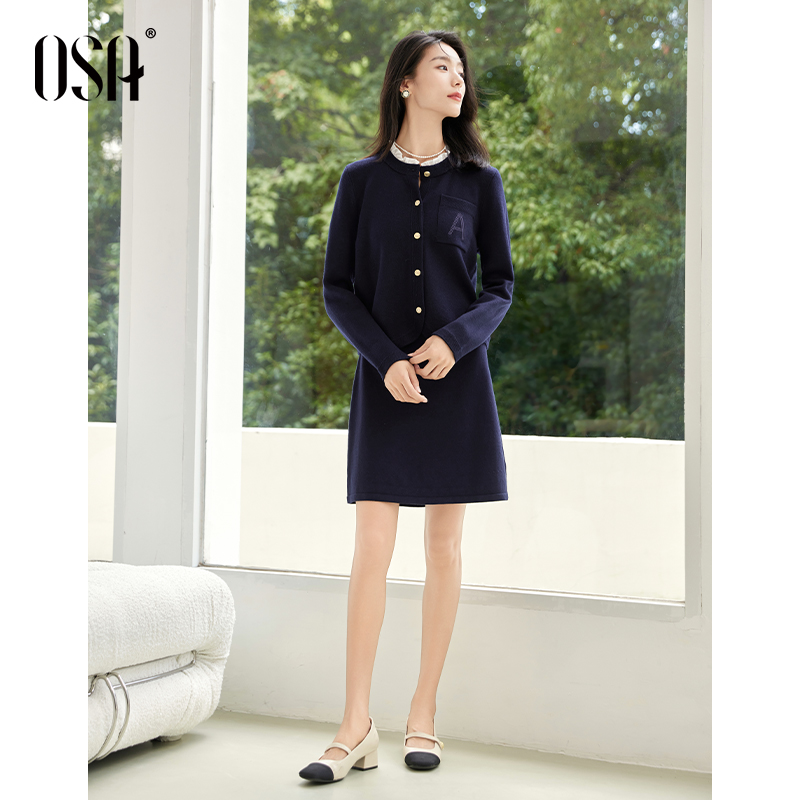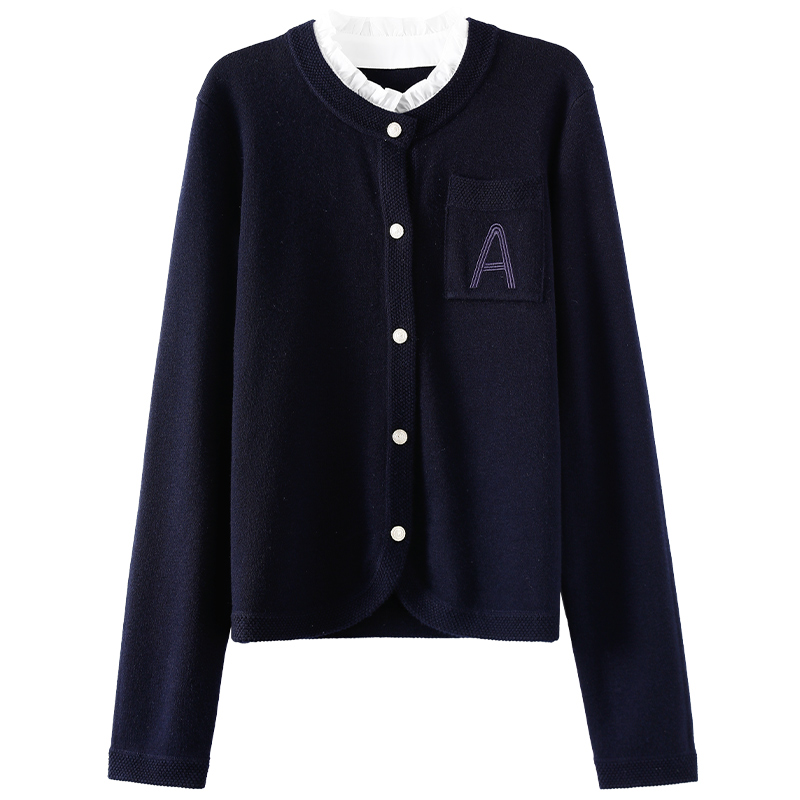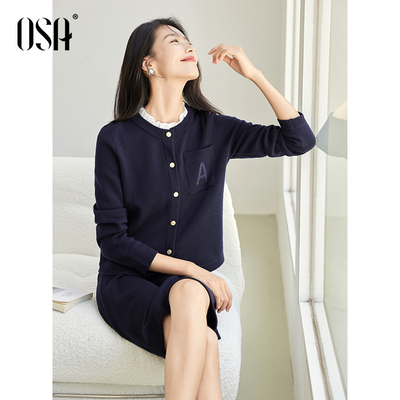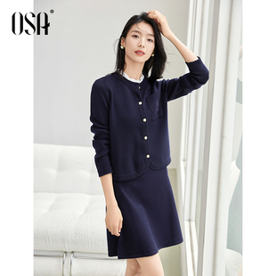 假两件气质开衫 秋装 毛衣 女2025年新款 OSA欧莎学院风荷叶边针织衫