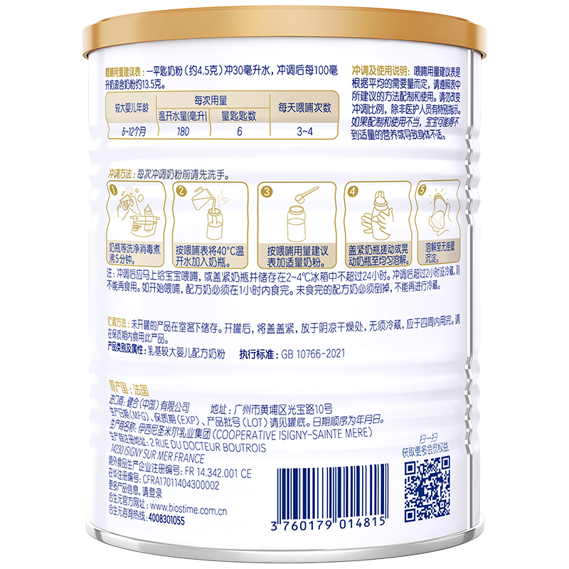 合生元 12月宝宝法国进口 派星天护较大婴儿配方奶粉2段350g二段6