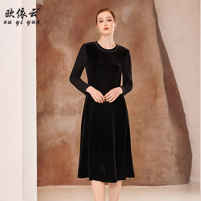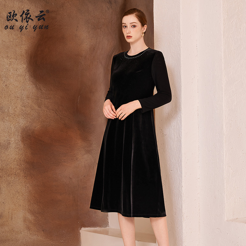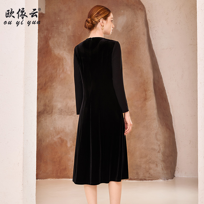 欧依云中年妈妈微胖连衣裙收腰显瘦简约洋气秋装 气质收腰裙2025新