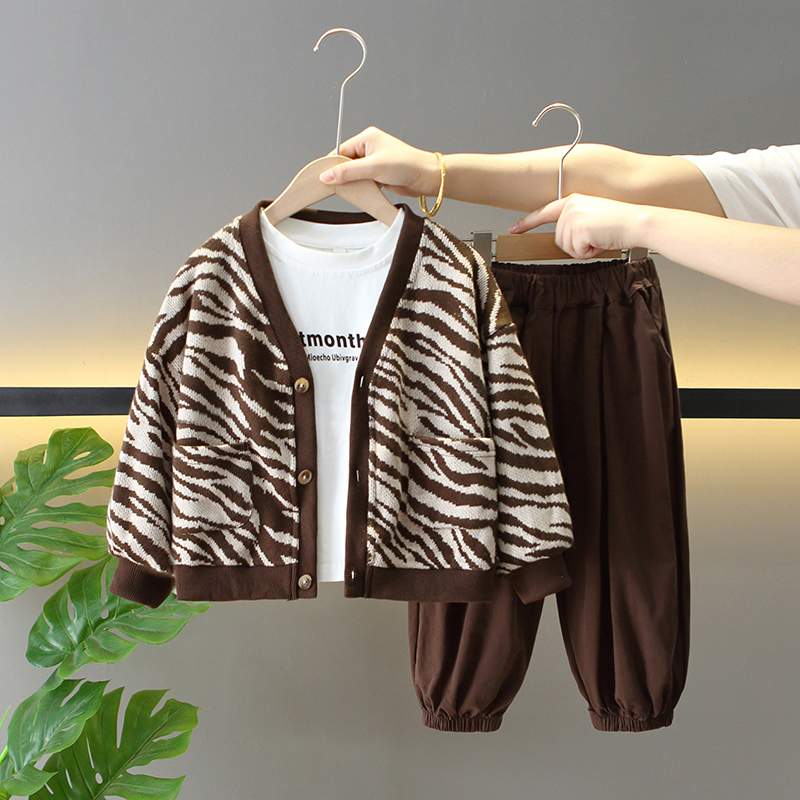 2025新款 毛衣套装 洋气男童酷帅三件套宝宝时髦三件套 春秋季 儿童装